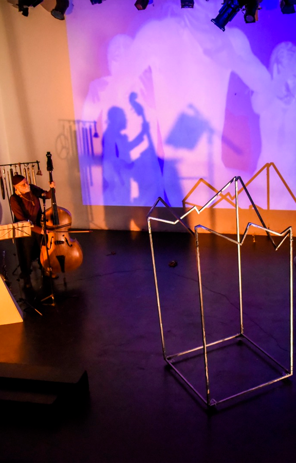 Desde la creación del grupo se invitó a artistas visuales y plásticos a participar de las composiciones. Empezamos a crear partituras gráficas para la escena, vestuarios escultóricos, objetos sonoros, esculturas lumínicas y comenzamos a pensar en formas donde lo plástico y visual fueran punto de partida para las obras.